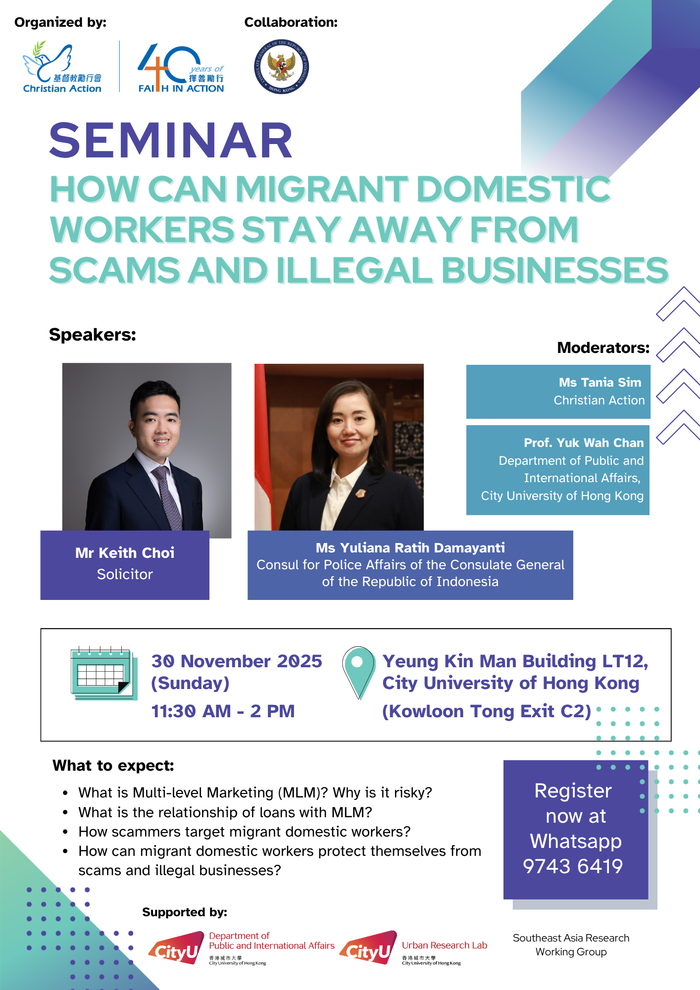 | Venue: | G7603, Green Zone, 7/F Yeung Kin Man Academic Building, CityUHK |