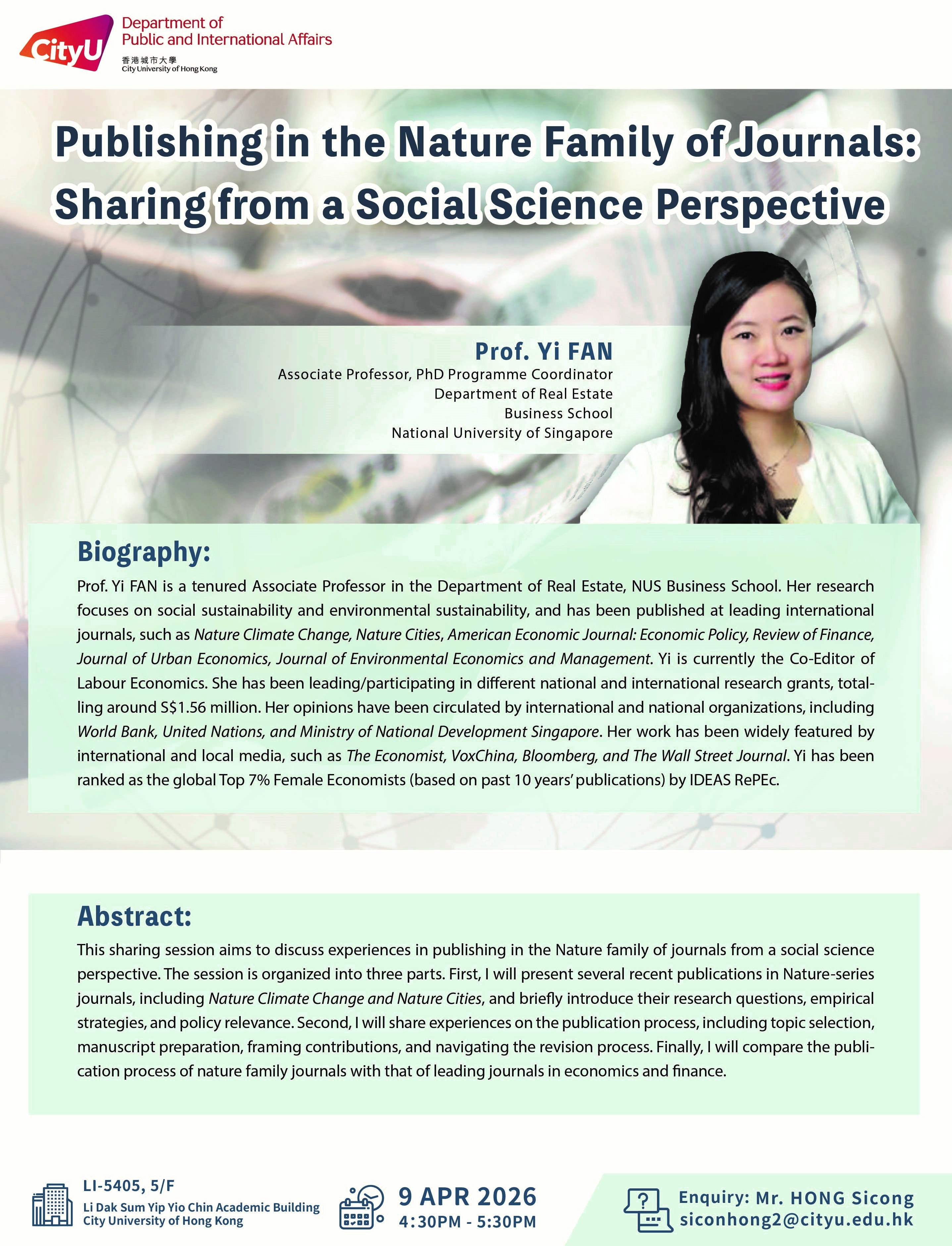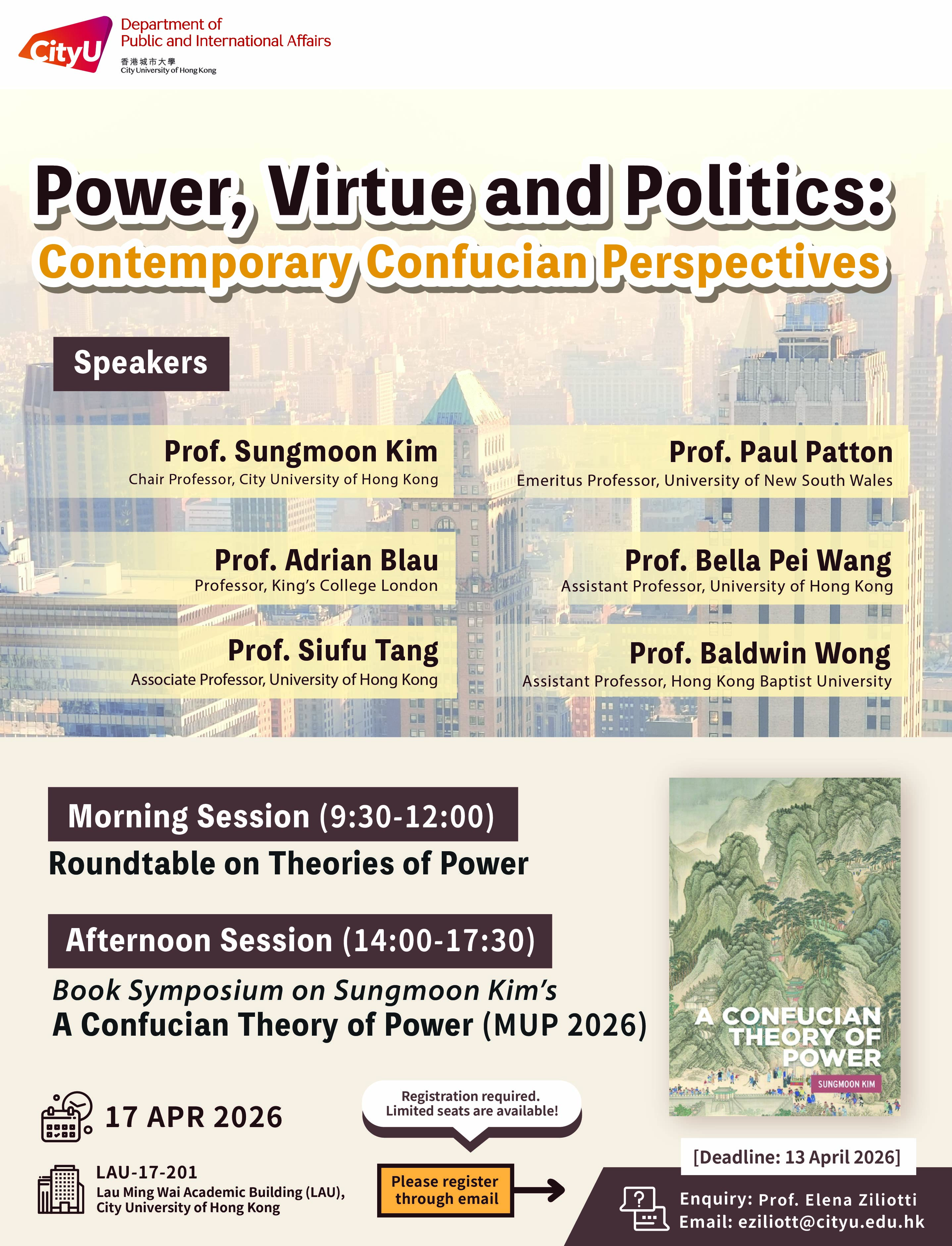 Registration is required, and limited seats are available. For enrollment, please email eziliott@cityu.edu.hk by 13 April 2026.
