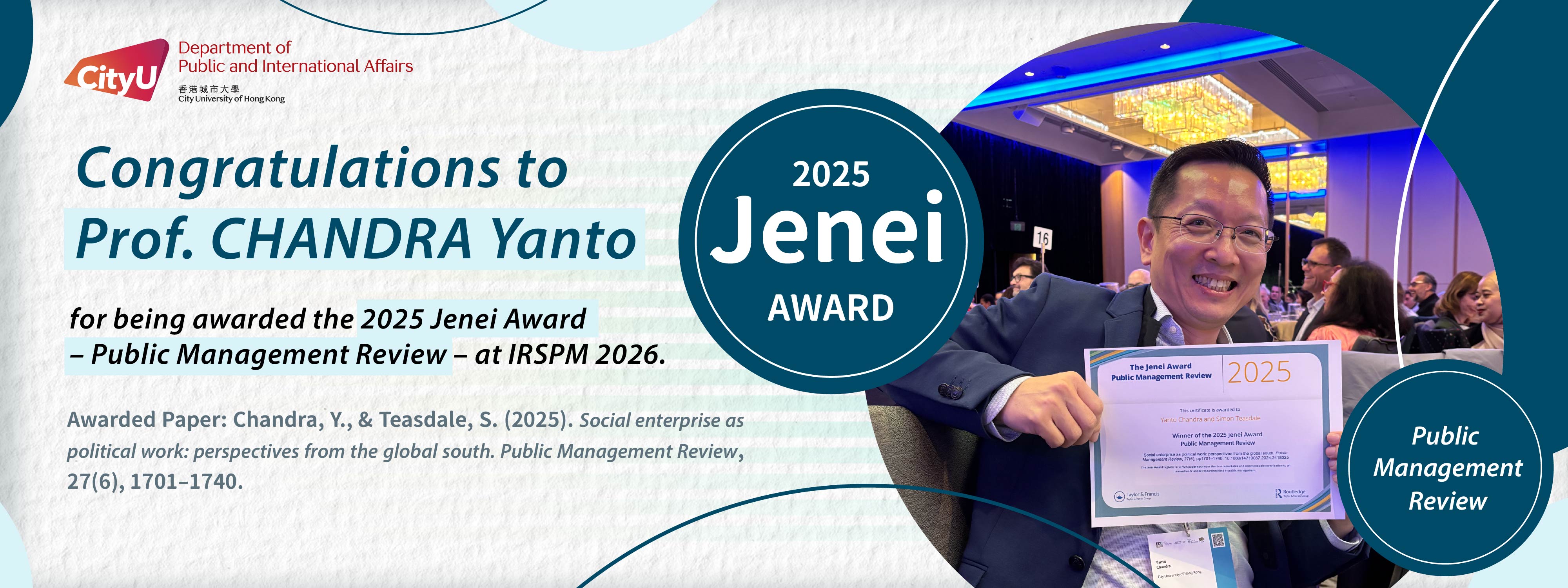 We are delighted to announce that Prof. CHANDRA Yanto has won the 2025 Jenei Award from Public Management Review at IRSPM 2026. The award ceremony was held during IRSPM 2026 in Perth on 9 April 2026.