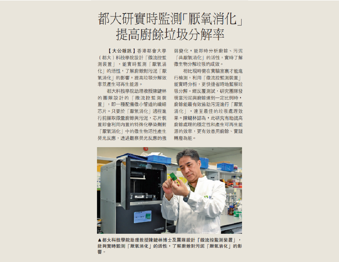 Media & Press Dec 22 2023 香港經濟導報: 都大設計實時厭氧消化活性監測裝置 提高廚餘分解效率並產生更多可再生能源 Dec 22 2023 Asia Research News: CityU team wins Gold Award at the Hong Kong Green Innovations Award for transforming manmade seawalls into living shorelines Dec 22 2023 大公文匯: 都大研實時監測「厭氧消化」提高廚餘垃圾分解率 Dec 21 2023 星島頭條: 都大設計實時「厭氧消化」活性監測裝置 提高廚餘分解效率 Dec 21 2023 香港商報: 都大設計實時厭氧消化活性監測裝置 提高廚餘分解效率並產生可再生能源 Sep 27 2023 大公報: 智能海綿吸油污水產養殖好幫手 Sep 27 2023 明報: 城大研只吸油不吸水海綿下月開鑼創科嘉年華展出 Sep 13 2023 橙訊: 圍爐·梁美儀 第82集 EP1-3 Aug 29 2023 新浪香港: 專訪|梁美儀: 日方檢測數據涉轉移視線本港現有進口管制可保障市民健康 « 1 2 3 4 5 6 7 8 9 10 11 12 13 14 15 16 17 »