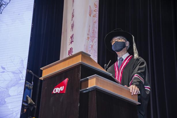 Prof TAN Cheng-Han, SC, Dean of CityU School of Law, first gave an address to our graduates. He congratulated all of them warmly on their wonderful achievement. He also congratulated their parents, “I know that seeing your children in their robes today brings you immense joy and pride”. He then shared five pieces of advice with our graduates. First, learning does not end at university. Second, honesty, humility and integrity should always guide what you do. Third, be adaptable because things will change and this is also the reason why learning should continue beyond university. Fourth, you will make mistakes and there are times you will feel discouraged. In such times, finding the core of strength within yourself and picking yourself up are important. Finally, there is no substitute for hard work. He concluded by wishing all of the graduates much happiness and fulfilment in the years ahead.