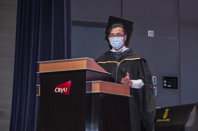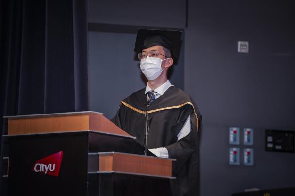Mr TSANG Cheuk Lok, the JD graduate representative, said, “the JD programme is a crucible of fire. And to many of us the journey to the end has been riddled with myriad hardships, made only more difficult by the trying circumstances that we find ourselves in. The social incidents. The pandemic. They have all taken a toll. We could not have dealt with such challenges on our own, which is why I would like to take this opportunity to thank all the faculty members, the administrative staff, and most importantly, our parents and our loved ones, for their unwavering support throughout our journey.” Finally, he shared that his time at CityU had also brought clarity to his convictions: “I want to help families that face domestic violence but lack the necessary information to access legal aid, or for some reason just fall through the cracks of the legal aid system.”