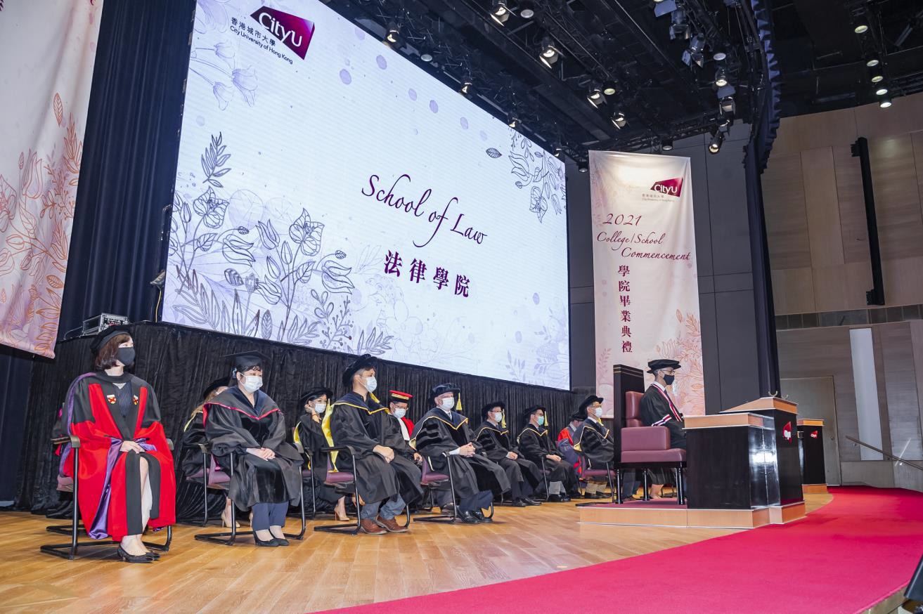 香港城市大學(城大)法律學院於 2021 年 5 月 30 日 (星期日) 在劉鳴煒學術樓黃翔羅許月伉儷講堂舉行畢業典禮, 慶祝 2021 年畢業生圓滿完成學業。大部份畢業生均親身出席參加,唯部分畢業生在線上參與。
