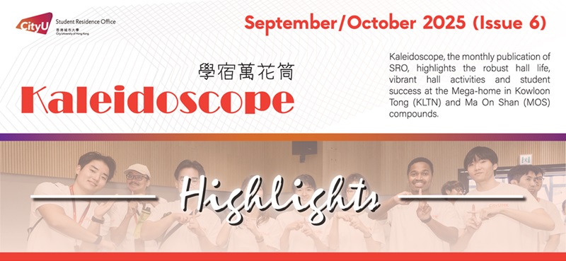 Kaleidoscope, the monthly publication of SRO, highlights the robust hall life, vibrant hall activities and student success at the Mega-home in Kowloon Tong (KLNT) and Ma On Shan (MOS) compounds.