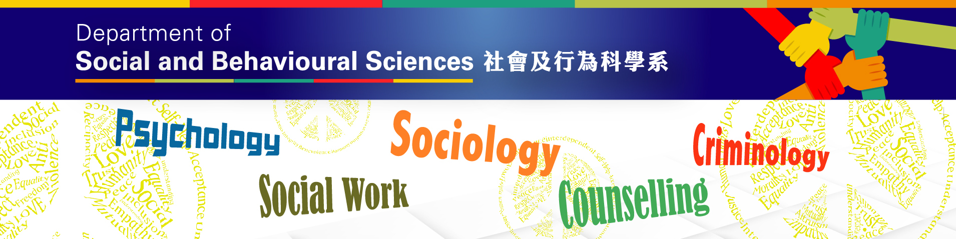 The Department pays great attention to research development and all our teaching staff are active researchers. The strength of the Department lies in the diversity of its experienced academic staff with diverse research interests and professional expertise in the area of applied sociology, counselling, criminology, psychology, social work, education and practice. Staff’s research interests include community work, criminology, family therapy, human development and aging, group work, regional development, social casework, social and community psychology, social welfare, urban sociology and youth studies. The combination of theory and practice is also clearly demonstrated in the Departments’ research outputs in international and local journals, books, consultancy assignments for various government departments and non-governmental organization.