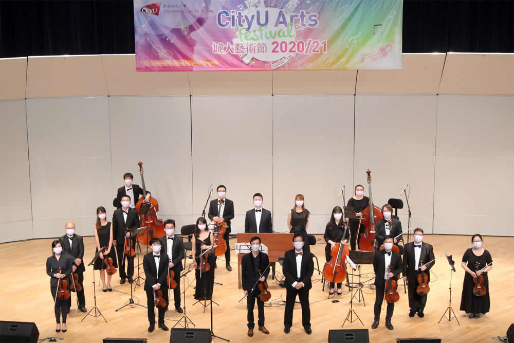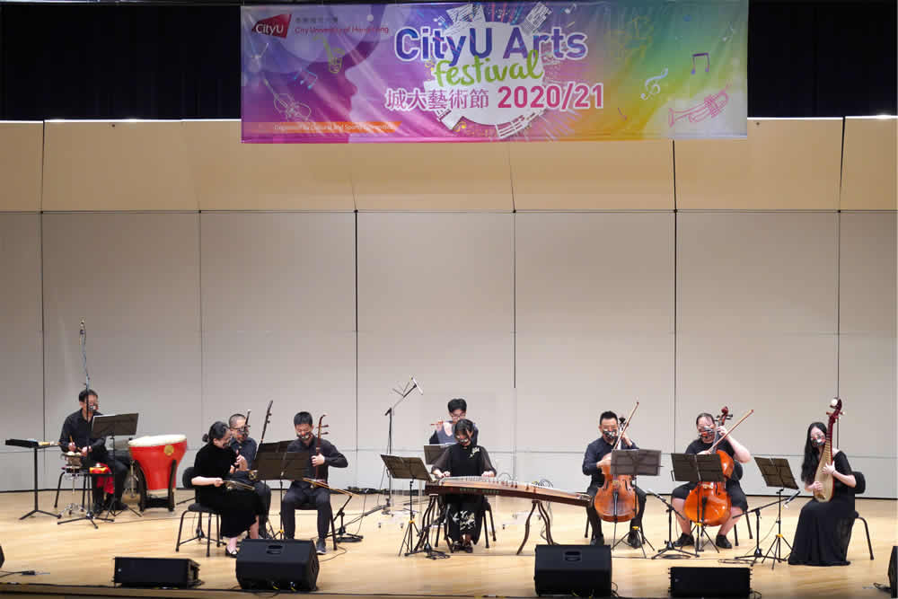 The Closing Concert of CityU Arts Festival 2020/21, ‘Four Seasons with You’ was held on 16 April. Under the social distancing arrangement, around 250 audiences attended the event. They enjoyed both Chinese and Western music presented by members from CityU Chinese Orchestra and CityU Philharmonic Orchestra.
