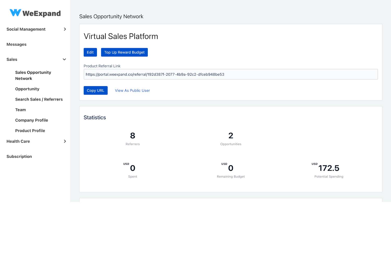 WeExpand 是一个 B2B 销售技术平台,让公司客户将社交联系变为按需虚拟销售人员,以便开发可扩展和可持续的推荐销售网络,帮助他们通过社交内容分享,达致「病毒营销」效应,以推广产品和自动化推荐销售。 促销电话或电子邮件等传统销售渠道已达到瓶颈,而过去两年,由于疫情大流行,取消了许多面对面的会议,大大减少了业务互动。为彻底改变传统销售格局,WeExpand建立了香港首个虚拟销售平台,以创造更多商机。