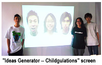 Another writing machine, 'Ideas Generator – Childgulations' was created by SCM students Marvin Hui, Catherine Tai and Jeff Ng, based on the concept of automatic writing. The machine is divided into three parts: the first part represents "childhood";