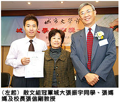 港城市大學(城大)主辦的「城市文學節」重點項目「城市文學創作獎」徵文比賽已圓滿結束。是次比賽廣受港、澳大專生的支持和參與。在三個組別的二十個獎項中,城大勇奪九項,反映城大學生語文水平優異及具有高度的文學創作力。