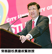 演講。何教授邀請在場的新生參與多個遊戲,並透過遊戲鼓勵同學積極進取,確立人生目標。何教授表示,跨進大學門檻,就是同學們踏上人生新里程的開始。城大將會是大家成長的夥伴,協助同學們訂定方向,成為社會未來的棟樑。「大家要把握自己在大學生活中的蛻變過程,鞭策自己成為一個理想的畢業生,」何教授補充說。