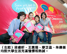城大的新生對大學生活都充滿憧憬和熱誠。透過「學生運動員入學計劃」入讀商學院工商管理榮譽學士──會計與管理資訊系統課程的王素珊對能夠入讀城大表現興奮。「我十分欣賞城大女子籃球隊的團體精神,一直渴望能夠成為她們的一份子。來年我會入住學生宿舍,將有效地分配時間,應付學習與球隊練習,」王同學說。