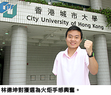 此外,獲選為香港區120名火炬手之一的工商管理副商學士(環球商務)課程一年級生林德坤將負責第72棒位於沙田的火炬傳送。他自言之前一直無想過會成為火炬手,當選的第一個感覺是「光宗耀祖」,又估計自己