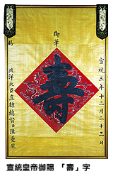 其中不少展品非常珍貴,如清朝道光皇帝御書闡福寺瞻禮詩及宣統皇帝御賜「壽」字。闡福寺瞻禮詩是道光皇帝於1820年御駕闡福寺祈福的墨寶。「壽」字則是宣統退位前一天賜給直隸總督的御書。
