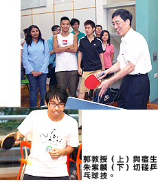 郭教授在探訪期間與三名宿生進行乒乓球友誼賽,並品嚐了宿生特地為他烹飪的家常小菜。市場營銷學系二年級生陳玉婷花了四個小時為郭教授預備數道家常小菜。她說:「我希望讓郭教授體驗一下平日的宿舍生活,讓他嚐一嚐我們平日的飲食。」楊浩則烹調了四道河北菜供郭教授品嚐。看到郭教授很欣賞每道小菜,吃個不停,他們均感到非常滿足。