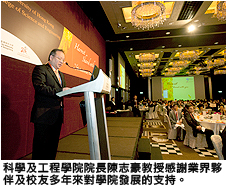 科學及工程學院院長陳志豪教授在晚宴上向逾350位嘉賓致辭,感謝業界夥伴及校友多年來對學院發展的支持,贊助獎學金、捐款及提供實習機會支持學院的發展。