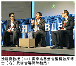 「要推動社會前進,建立更美好的明天,不同背景的學生應多參與時事討論,」沈教授說。他認為獨立思考能力極為重要,並補充說:「80後的學生應有自己的觀點,同時也應包容其他不同意見。任何年齡組別或界別的人士,只要和平地表達富建設性的意見,均會促進社會發展。」沈教授分享意見後,與宿生進行交流討論。