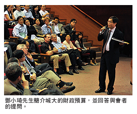 財務處處長鄧小琦先生接着簡介城大2010-2011年度的財政預算,述及既往預算情況的同時,講述了當前的預算目標、收入來源,以及未來所需的開支。