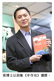 獲獎作品《半存在》是吳博士出版的第四本詩集,靈感來自奇斯洛夫斯基導演的《兩生花》。這部電影認為,個人並非完全的實體,生活於人世的只有一半,另一半存在於別處的另一個現實之中。