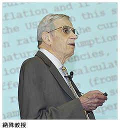 約翰•納殊教授是1994年諾貝爾經濟學獎得主,現任美國普林斯頓大學資深研究員,因研究博弈論取得開創性成果,成為傳奇人物。渴望親聆演講的人超乎預料,原定場所的座位供不應求,只好另開兩處演講廳,直播實況。
