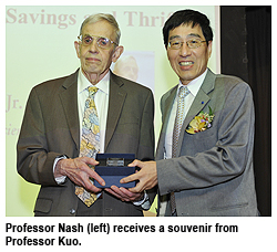 城大校長郭位教授致歡迎辭時說,納殊教授還應是諾貝爾和平獎的候選人,因為他的博弈論研究成果使得國際紛爭有可能以雙贏方式解決。