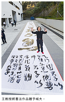 香港城市大學(城大)創意媒體學院邀請國際知名書法家、中國美術學院王冬齡教授前來校園即席揮毫,書寫巨幅狂草書法作品,以闡釋現代書法概念,並推動書法與本地藝壇的學術交流。是次活動3月8日在城大邵逸夫創意媒體中心舉行。