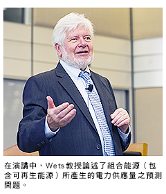 Wets教授首先為聽眾概述了「系統調度機構」(System Operator)的主要使命,即把政府的、與政府關聯的、獨立於政府的各類用戶的用電需求進行協調,其首要目標是妥善管理電力網,以避免嚴重的供電中斷事故。一般而言,要預測次日的電力供應,計算的依據是天然氣、煤炭、核燃料等明確可控制的燃料之使用量;然而時至今日,全球正日益推動將可再生能源也包含在內,因此關於如何預測某一社區次日所需的電力用量,就必須有嶄新的思路。