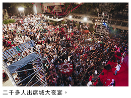 當夜筵開180席,參與者有多位校董、師生員工、校友等共計二千多人,大家聚首一堂,度過一個歡快而難忘的夜晚。