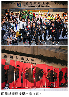 夜宴安排了一連串的特備節目,先有城大舞蹈學會的精彩舞蹈表演,隨後有音響工程學會樂隊的即興合奏,音樂學會表演無伴奏合唱,魔術學會的同學登場表演,技藝出神入化,令人既緊張又興奮。參與時裝表演的同學悉心打扮,變身為電影《怪獸大學》中的卡通人物,另有人裝扮成交通紅綠燈,甚至變為城大的紅色大門、俄羅斯方塊、自由神像、水母等趣怪造型,在台上又唱又跳,全情投入。台
