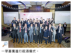 城大校董會成員、城大基金理事會成員、城大基金周年晚宴2015籌備委員會成員及管理層隨後舉行簡單而隆重的祝酒儀式,為晚宴揭開序幕。