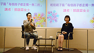 鄧藹霖女士在校友霍嘉樂先生主持的講座中暢談親子之道。
