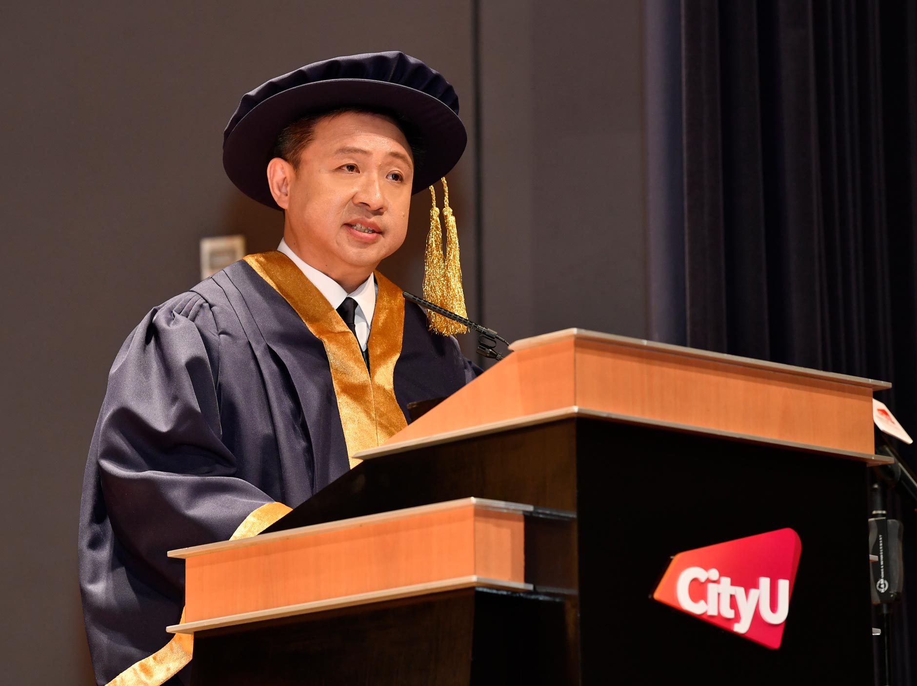 陳醫生在代表榮譽院士致辭時表示,城大致力於培養專業人才和領袖,而他們深知真正的成就在於為他人生活帶來改變。他說︰「對於能夠幫助城大進一步推進這使命,助大學轉型和持續成功,我深感自豪。我和張先生將以榮譽院士身分繼續倡導公平可及的醫療保健,以勤勉和關懷服務社會,並培育新一代專業和行政領袖。」