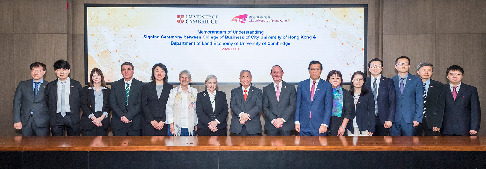 第一份合作備忘錄圍繞加強城大商學院及劍橋大學土地經濟系的學術和研究層面合作。該合作備忘錄由城大商學院院長陳家樂教授和劍橋大學土地經濟系系主任Martin Dixon教授簽署,並由城大校長梅彥昌教授和劍橋大學露西.卡文迪許學院院長Madeleine Atkins女爵士見證。