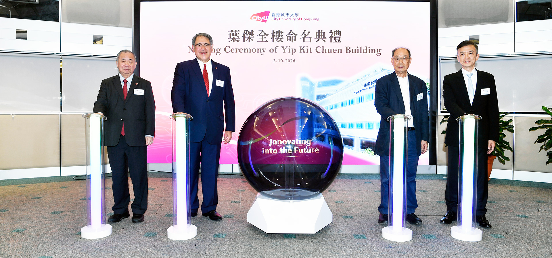 般哥展覽館早前舉辦「創新演煉」開幕典禮,同時慶祝展覽館成立十周年。典禮由香港特別行政區政府財政司司長陳茂波先生、城大校董會主席魏明德教授、般哥展覽館諮詢委員會榮譽主席 Indra Banga 女士,以及城大首席及常務副校長李振聲教授擔任主禮嘉賓。