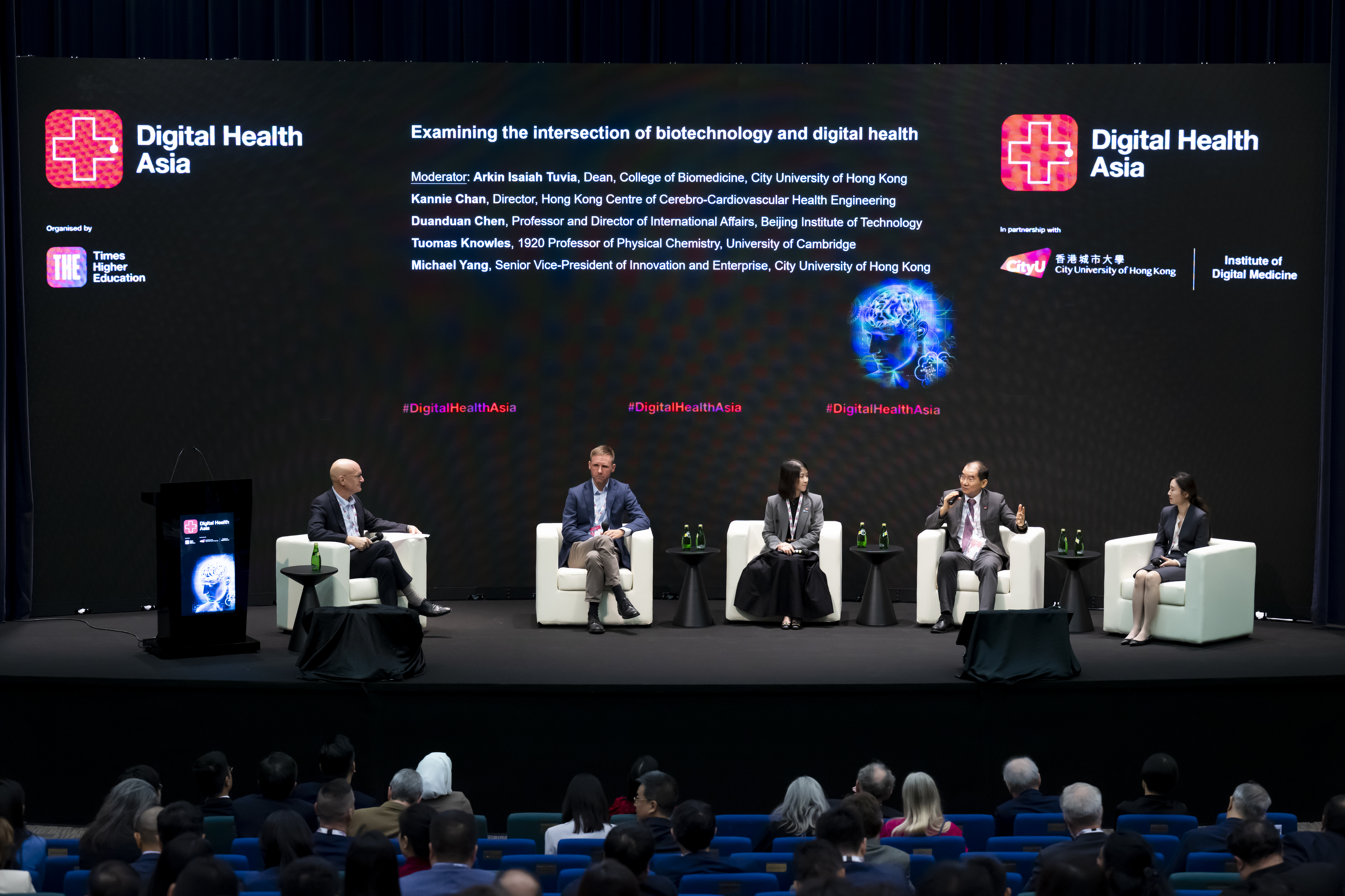 - 城大與泰晤士高等教育(THE)在九月合辦「亞洲數字健康峰會2025」,匯聚來自17個國家和地區、逾420位代表參與。期間舉辦十多場研討會,50多位來自中、美、英、澳、法、日、韓等地專家就基因治療、類器官、癌症早期篩查、人工智能與大數據應用等前沿議題深入交流,講者包括英國皇家學會院士、劍橋大學首席副校長Mark Welland爵士教授、中國科學院外籍院士、美國西北大學黃永剛教授,與美國國家科學院院士、美國西北大學John Rogers教授等。
