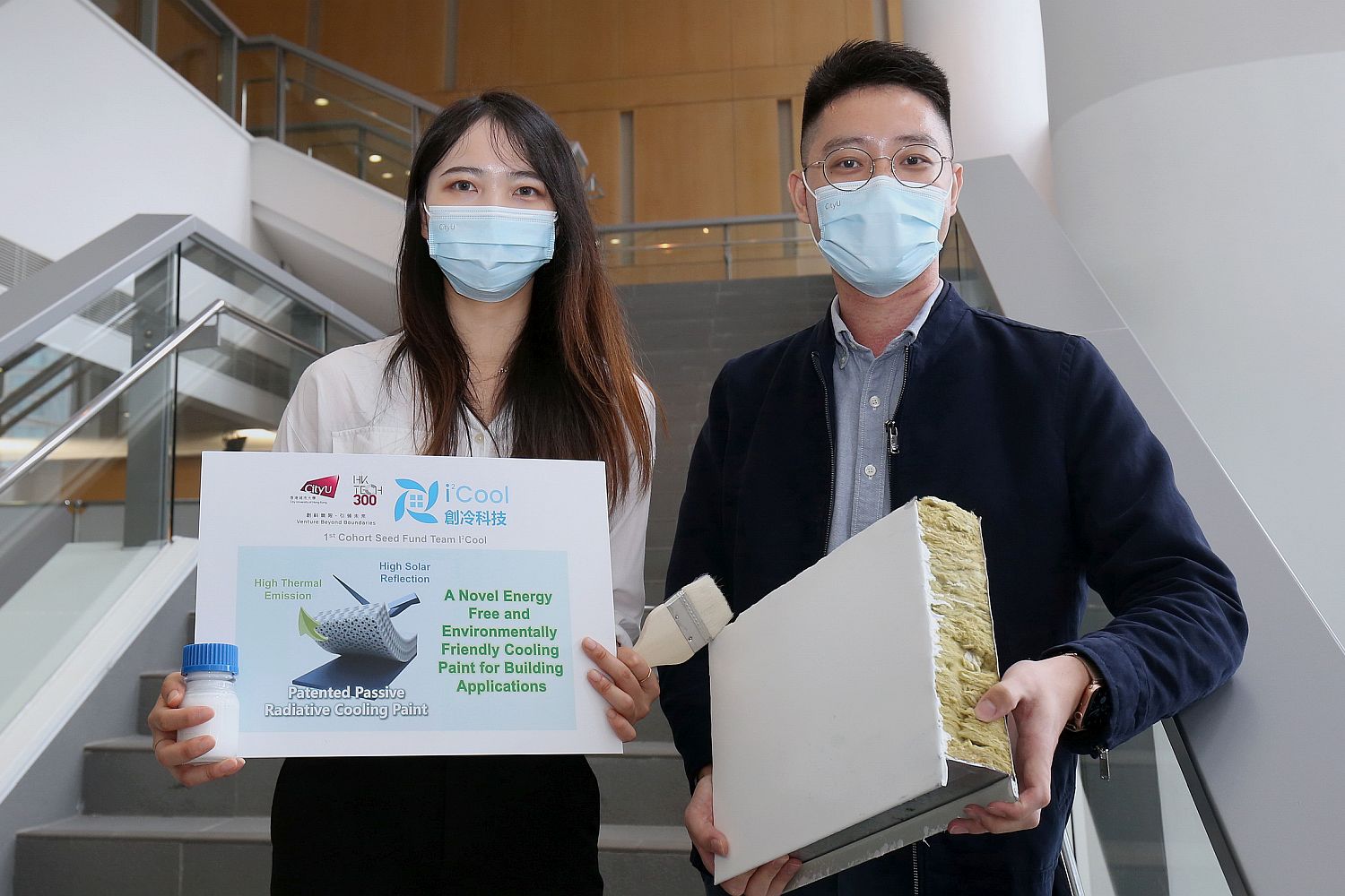 傑出的科研成果,需要轉化為實際應用,始能為社會帶來莫大裨益。來自香港城市大學(香港城大)能源及環境學院的研究助理杜雨薇和博士生朱毅豪等成員,將他們的導師、該學院助理教授曹之胤博士的科研項目發揚光大,成立了初創企業創冷科技(i2Cool),藉此推廣由他們研發的一款嶄新零耗能、低成本及高效的被動式輻射製冷塗料,以實現建築物節能減碳。