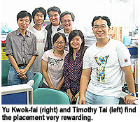 Translation student Yu Kwok-fai and Computer Science student Timothy Tai said that through their placements, they realized what working full-time in an organization was like. “It requires lots of effort and commitment," Kwok-fai said. "I was excited that I got a chance to help the SBC with some translation work.”  "For my part," Timothy said, “I found it’s totally different from learning in the classroom; work-based programming was more challenging.”