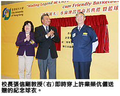 校長張信剛教授致辭時對許先生給予城大的捐獻表示感謝。「許先生對城大的關心和支持印證了城大校友對大學的歸屬感,」張校長說:「城大校友平均年紀及社會影響力或許不及歷史較久的大學,但我們的校友對城大的關懷和感情卻並不遜色,他們跟母校的聯繫也愈來愈緊密。校友的支持和關懷是細水長流的,我深信許先生的支持,不僅有示範作用,可以進一步帶動城大校友,集腋成裘,幫助大學繼續茁壯成長,還可以把校內的關懷文化延續下去,讓它更發光發熱。」