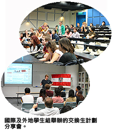 此外,國際及外地學生組更於11月3日起安排七節分享會,讓曾參加交流計劃的同學分享到海外當交流生的體驗和經歷。2005-06年度,城大共有273名同學透過交換生計劃到法國、加拿大、土耳其、英國、奧地利、德國、澳洲、瑞典及美國等國家及城市,一嚐到海外大學學習的滋味。經過半年的交流生活,同學們及他們身邊的親友都感到他們成長了。