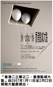 「香港二三事之二:香港點城大點」的展期為2007年1月11日至2月22日,假城大康樂樓6樓城大藝廊展出,開放時間為星期一至日,每日上午10時至下午7時。