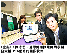 陳景鋒、陳泳恩和鄧恩健則研習目前本地商貿企業尚未廣泛採用的新一代網絡協定IPv6。他們開發的「第二代互聯網個人化平輩互動團隊應用系統」,是一個支援IPv6網絡的團隊軟件,主要為跨地區合作的團隊提供無時間及地區限制的商業洽談和多地點視像會議功能。其特點是毋須使用伺服器,提供一個高度安全及無法被竊聽的可靠通訊平台。
