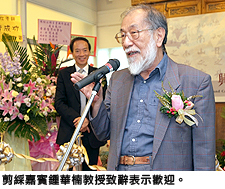鍾教授致辭時歡迎陳先生「回歸」香港,並讚賞說陳氏的新陶瓷作品依然保持了以往渾厚淳樸的風格,但多了一份人情味。