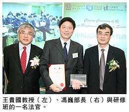 結業典禮上,城大法律學院院長王貴國教授向高級法官頒發了結業證書。雲南省高級人民法院副院長田成有先生代表畢業法官致謝辭。