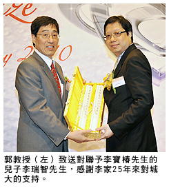 郭教授在典禮上感謝所有捐款人,特別是多年來一直支持城大的長期捐助者。郭教授說:「各位的捐款使城大學生發生巨大轉變,為他們創造難得的機會。我相信,他日學業有成、事業成功時,我們的畢業生會繼承這一傳統,支持他們的學弟學妹。在各位慷慨捐助下,城大已取得很大成就,將為社會發展作出更大貢獻。」