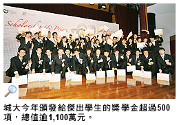 香港城市大學(城大)3月25日舉行獎學金頒獎典禮,並藉此機會表彰20多年來一直熱心捐助獎學金的善長。