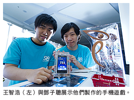 「玩家可將手機傾側、轉動,使畫面移動,以便從不同的角度射擊罐子。若能緊盯目標不捨,還能多次命中,」王智浩說。