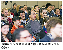 臧教授說:「在維護少數民族權利方面,中國政府的政策落後於全球趨勢。」他的演講吸引了眾多聽眾,大廳內座無虛席。