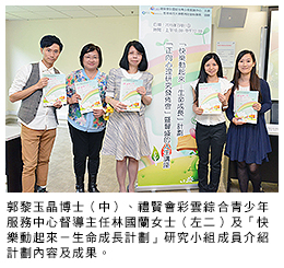 香港城市大學(城大)應用社會科學系與中華基督教禮賢會香港區會禮賢會彩雲綜合青少年服務中心合辦的「快樂動起來-生命成長計劃」,在去年3月至8月,以問卷訪問參加計劃的300多名9至13歲的兒童,以及200多名12至16歲的青少年,以了解個人的心理幸福感對個人情緒、快樂感及豐盛感有何影響。