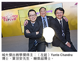 在開幕禮上,三位模範教師獲頒「傑出教學獎」,以表揚他們對提升城大教學質素的貢獻。獲獎教師分別是公共政策學系助理教授Yanto Chandra博士(兼任管理學系教職)、機械及生物醫學工程學系助理教授賴偉超博士、會計學系高級特任講師葉世安先生