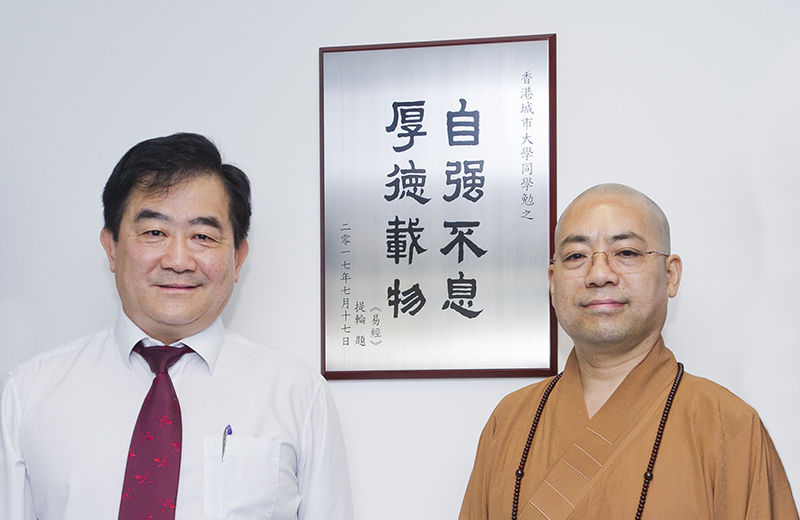 任教授致歡迎辭時,衷心感謝提輪法師對城大的鼎力支持及捐助。