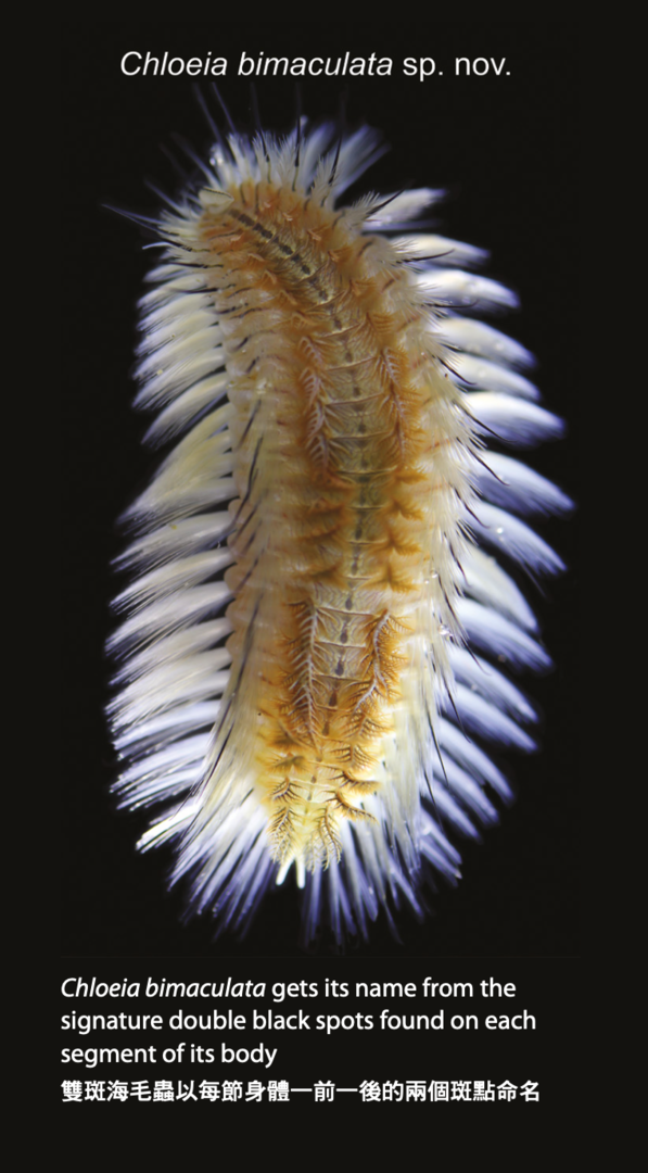 邱教授稱,為確保研究準確,團隊從外國的博物館商借模式標本(即描述新物種時依據的原始標本)以作對照,結果發現收集到的標本包含兩個物種,其中一種於西貢橋咀洲的珊瑚群落沙底收集到的,是從未被確認過的新物種。由於牠身體每節都有兩個深色斑點,以一前一後的方式排列,邱教授因此為牠取名為「雙斑海毛蟲」。這是首個於香港命名的海毛蟲物種,同時亦是全球近百年來僅第四次發現海毛蟲新物種。